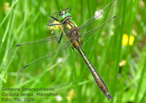 Neben der Gestreiften Quelljungfer und der Kleinen Moosjungfer wurden größere und kleinere Musterserien auch für folgende Arten gewonnen:Gemeine Smaragdlibelle (Cordulia aenea, 3. Bild)